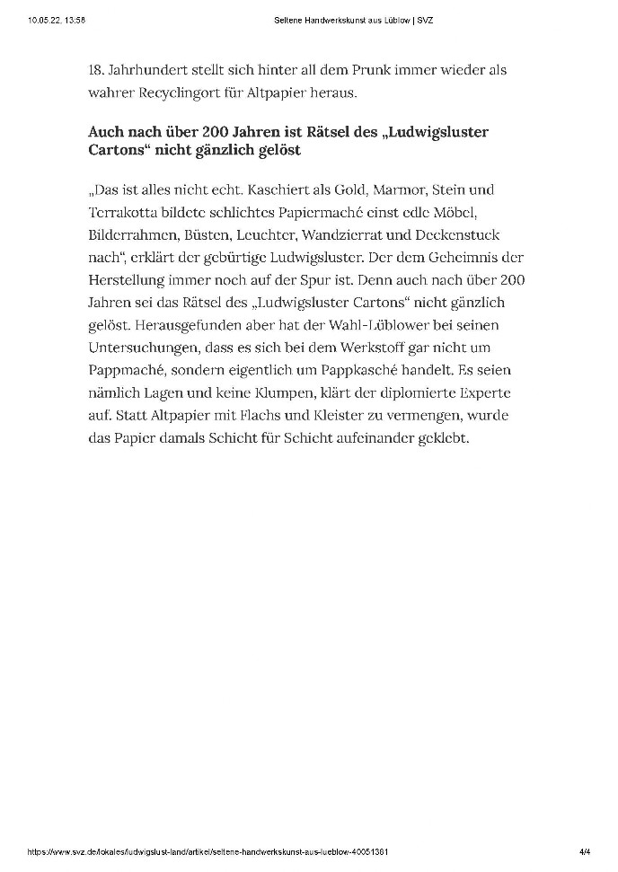 Ein Informationsvideo vom NDR über die Pappmache-Arbeiten am Schloß Ludwigslust ist hier zu sehen.